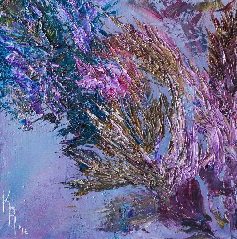 Very energetic small size abstract work. No need for framing but might look interesting in a large baroque style frame. Ready to hang. Goes with a small gift from the author.