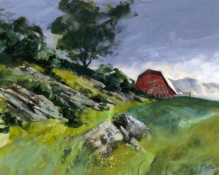 "Vermont" measures 19x15 inches; 28x24x1 in wood frame with Canvas Liner Matte. --- Bill graduated from the American Academy of Art in Chicago. Exposure to the great Impressionist Collection at Chicago’s Art Institute while at school was instrumental. He also credits study of Wolf Kahn, Irwin Greenb...