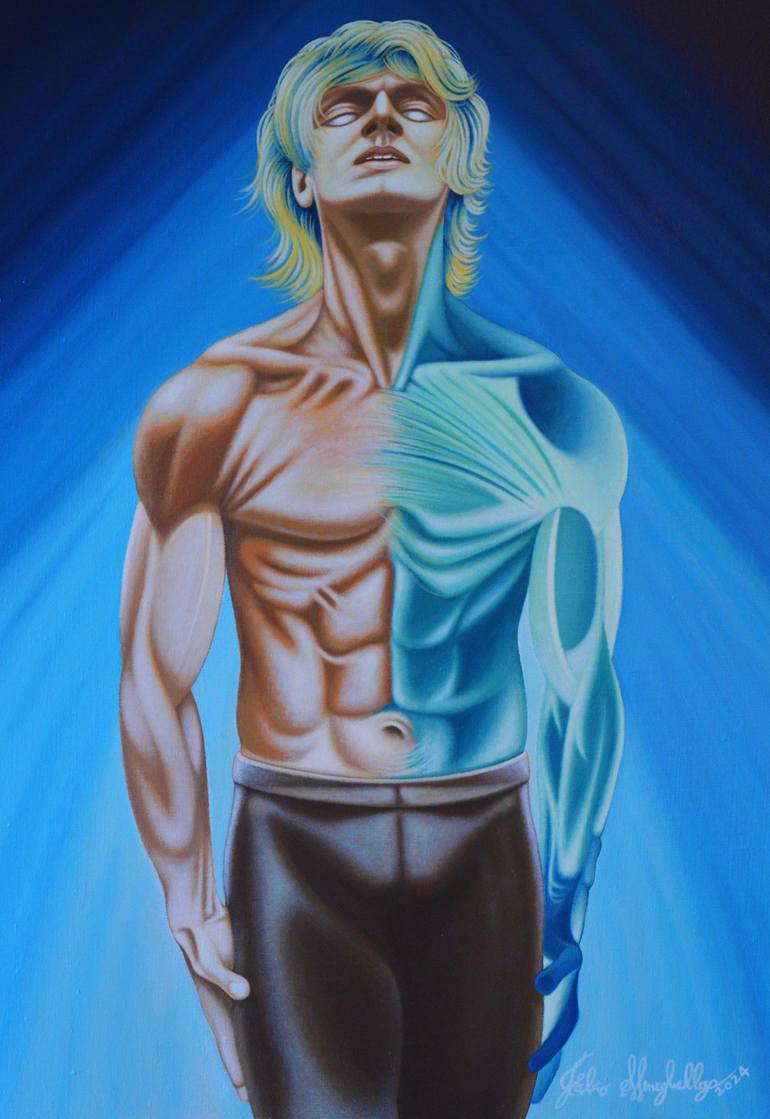 In the artwork "Verso l'iperuranio", the artist Fabio Meneghella has transported his entire world onto the canvas and he has done so in an extraordinary way. Set in the most remote part of the sky, the male protagonist represents the symbol of the rise and realization of his dreams. His gazes beco...