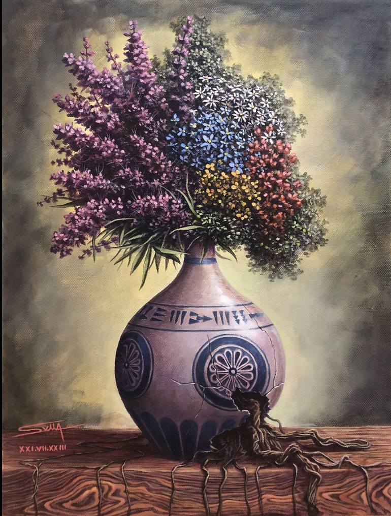 Bani Mokawas (b. 1985, Lattakia, Syria) is a multidisciplinary artist based in Dubai, known for his richly detailed oil paintings, large-scale murals, and intricate historical crafts. Entirely self-taught, Bani blends fine art with traditional craftsmanship—carving wood and stone, forging replica armor and weapons, and creating jewelry, chests, and trinkets that echo the legacy of ancient civilizations. His work draws deep inspiration from Roman and Mesopotamian history, a passion that permeates both his visual art and his craftsmanship. In addition to the visual arts. Bani’s artwork has been exhibited at notable venues including the Lattakia Museum (2007), Inanna Gallery in Lattakia (2008), and the National Museum in Damascus (2010).