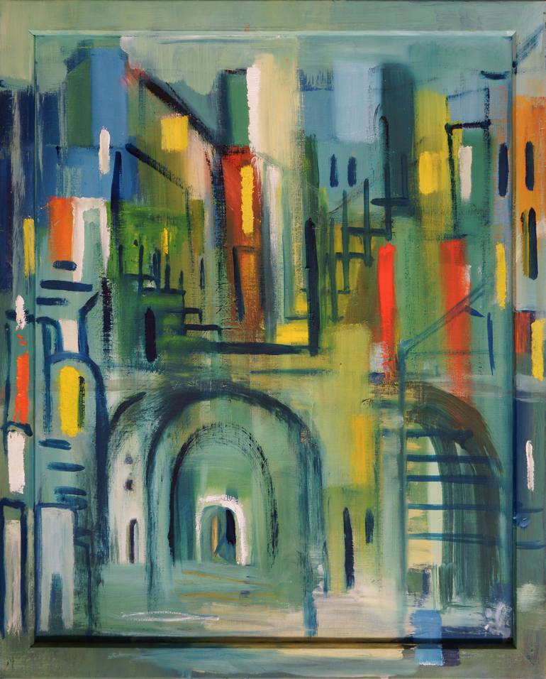 Inspired by a walk in Pisa I painted my thaughts and impressions of the Via della Sapienza on a wooden pannel within a wooden frame as a part of my work. Original was exposed at "AK Galerie", Graz, Austria until 15. Oktober 2024;