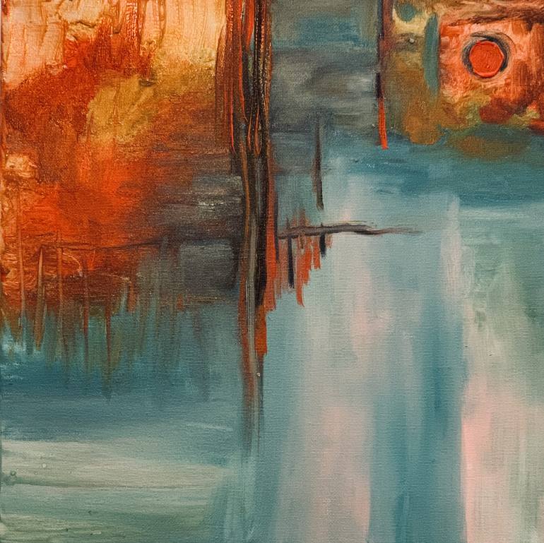This is a small ( 12"x12") original oil painting on stretched canvas. This is a unique piece. one of a kind. perfect size for your home office. The vibrant color of the artwork will lift up your mood and brighten up your room in a moment. Oil color has a shining effect and naturally bright. The pai...