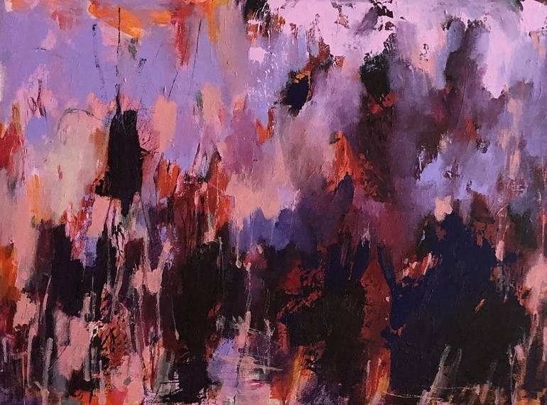 This artwork is created in 2021. It comes stretched, with a golden box frame. It is strong in expression and colour palette.