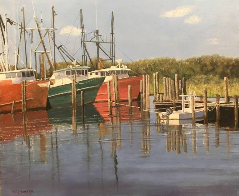 This painting was inspired by the Barnegat Light commercial fishing fleet. This fleet catches fish that are shipped around the world.