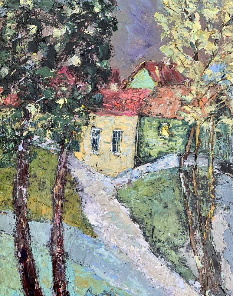 Village Landscape Impasto Oil Painting On Canvas *Title: ,,Small village“ *Size: 15.7"x 19.7" [40 x 50 cm] *Original handmade oil painting on canvas by brush and palette knife. *Made by me - Vilma Gataveckiene. This is not a copy or a print. *Signature on the front and on the back. ...