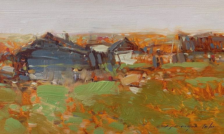 Artist: Vahe Yeremyan Work: Original Oil Painting, Handmade Artwork, One of a Kind Medium: Oil on Canvas Year: 2021 Style: Impressionism, Subject: Village, Size: 8" x 13.5" x 0.8'' inch, 20x34x2 cm, Unframed, Stretched on Wooden Bar, Gallery Wrapped, Ready to Hang. Yeremyan is an American Ar...