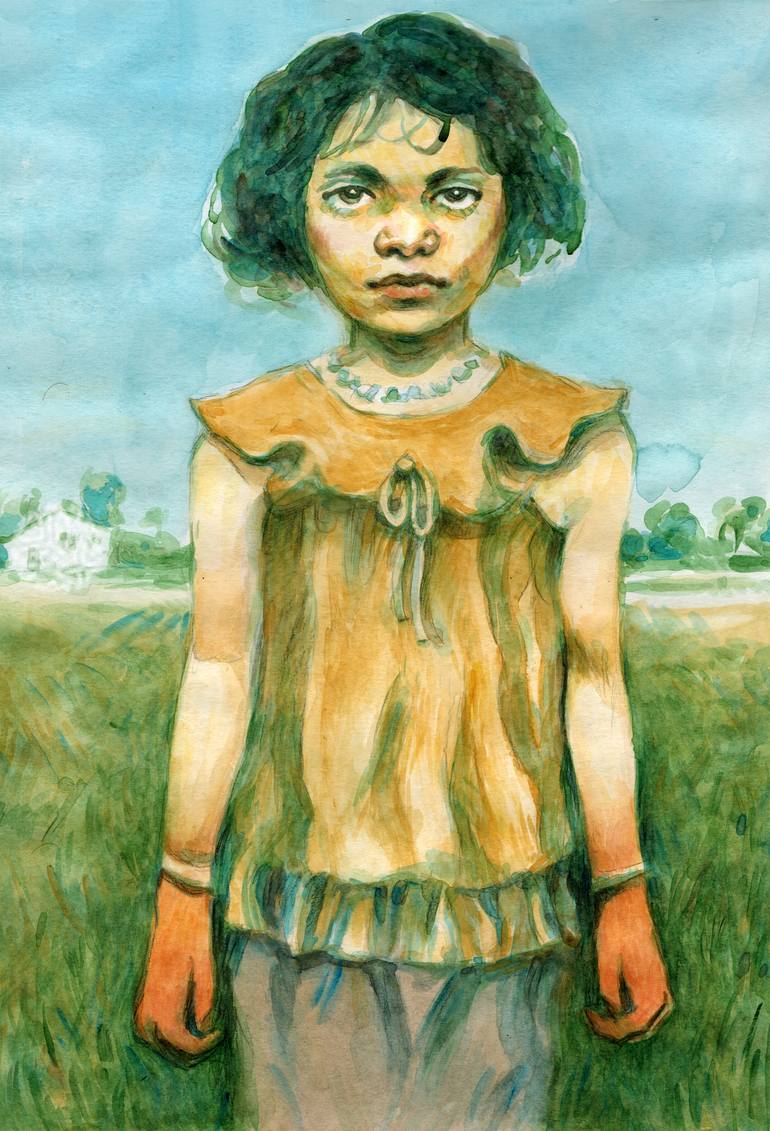 Portrait of a girl villager, is part of a series of portraits of people in their daily habitats. Watercolor on Canson Montval paper, 175 gr.