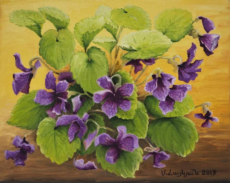 In this picture dominates natural beauty and pureness. The flower petals' veins are painted so that the viewer may feel how the smell drops from each violet. Usually three to six months is being spent to dry the painting for having high quality oil painting, but after finishing the painting I let t...