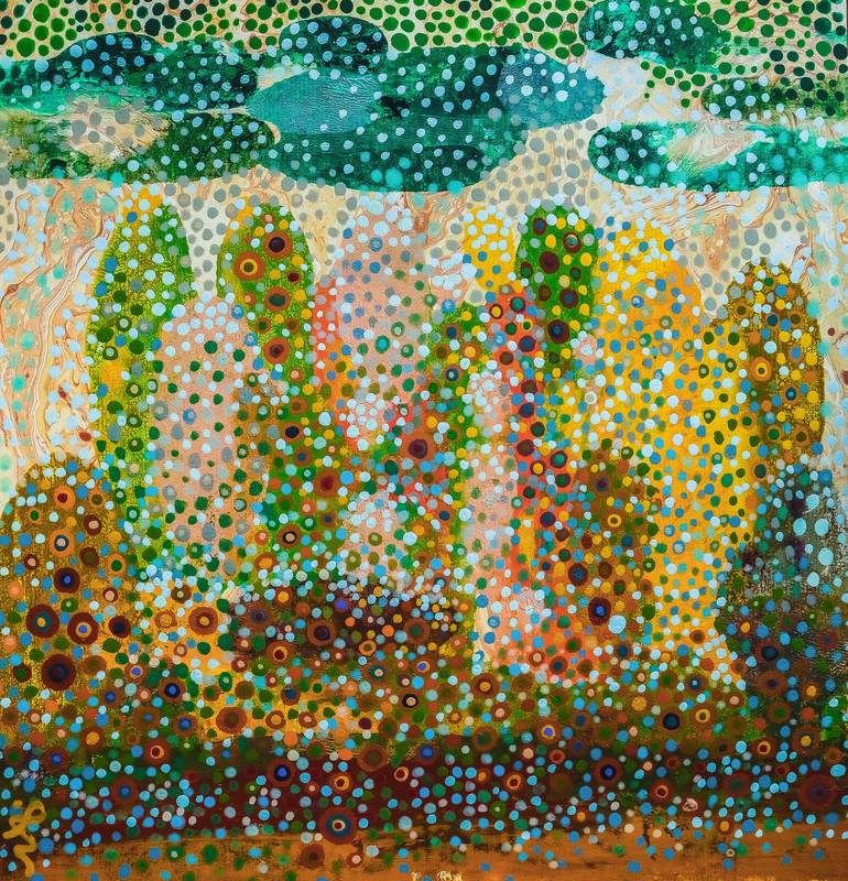 Mayra Bibiana Briceño is a Colombian artist whose work explores the expressive power of color and the quiet poetry of tropical nature. Trained in graphic design, she creates intuitive paintings that blend organic geometry, layered patterns, and luminous palettes. Her works function as inner gardens, spaces where memory, emotion, and perception converge. Through color, she builds atmospheres that evoke balance, contemplation, and a subtle sense of vitality. Briceño’s practice offers a contemporary, sensitive vision rooted in both personal experience and the aesthetic richness of the tropics.