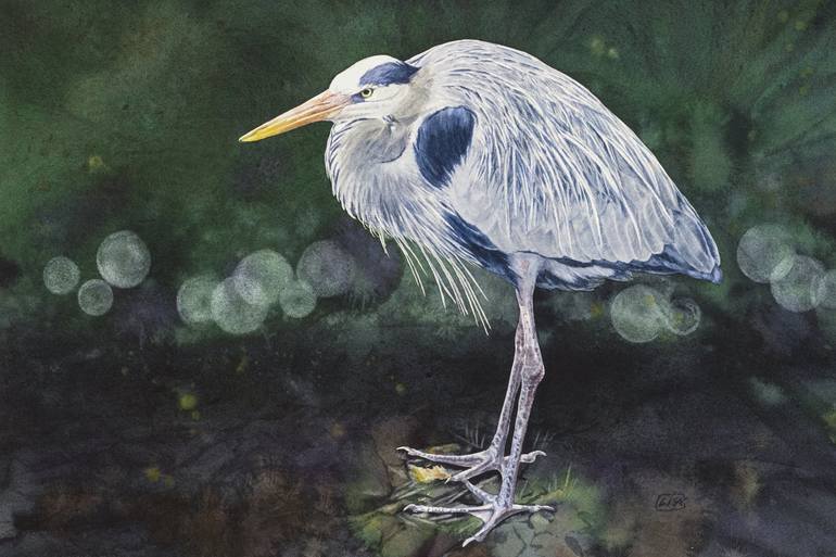 This work was inspired by a trip to a wildlife preserve in Florida. I hoped to capture serenity and calm of nature soaking in the shade. This semitropical theme utilizes textures and techniques achievable in watercolor. The background is strong color dripped into a wet surface to allow the paint col...