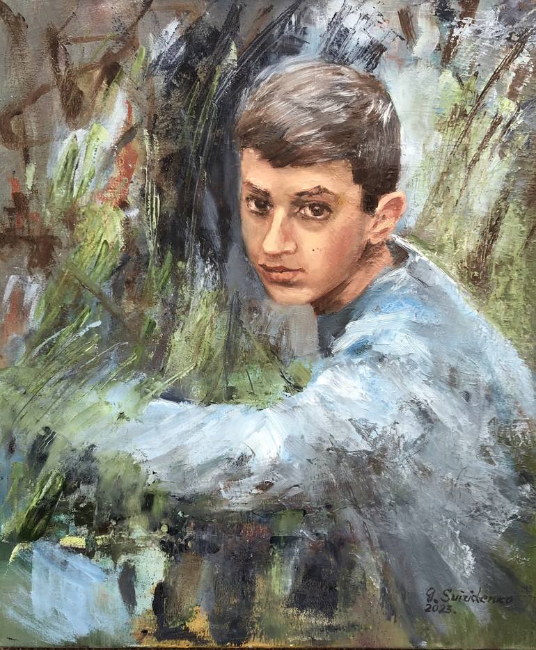 This painting shows a 12-year-old teenager from Tuscany. A beautiful age when he's still a child, but the masculine traits are already manifesting. This painting features energy typical of teenage age. The background of the painting is not detailed but solved in the form of an abstract landscape. I ...