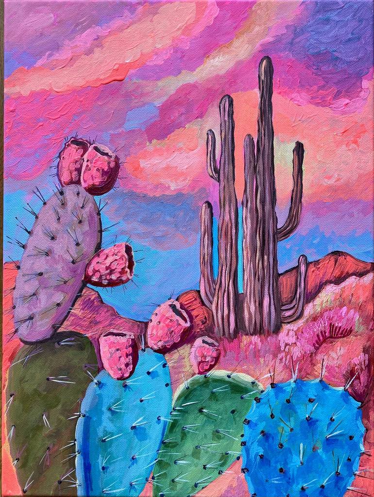 “Vivid desert” is a painting painted in impressionistic style, in acrylics. "Neon" alike colour mix, catchy look, modern piece for any wall if tour home supports and loves vibrancy. As all of my paintings, I like expressing them in "neon" look. Painted from the sides so it can stay unframed if the...