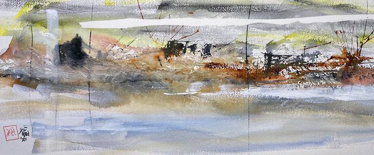 Original Abstract Artwork on fine art paper Arches 300 g /m2, fine grain, cold pressed, 100% cotton. Format 21,5x50 cm. Extrafine Watercolors Schmincke and Mijello. Gesso Daniel Smith. . Acrylic Liquitex Professional. Signed on the front and on the back by the author and with certificate of authent...