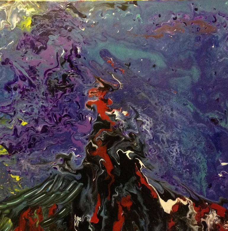 Volcano is a landscape painting then. Also a contemporary art painting done with acrylic paints and also a little spray paint to create a spray paint art abstract picture. On a board perfect for a 24" x 24" frame