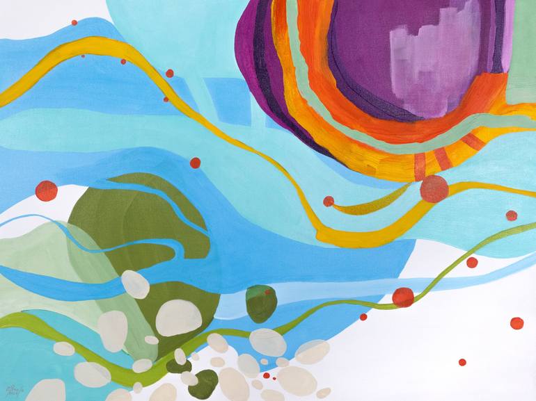 A cheerful, brightly colored piece that adds a point of interest to any room in the house. Acrylic on gallery wrapped canvas 152 x 91 x 4 cm (60 x 36 x 1,5 inches) Varnished to protect against U.V. Sides: white. Ready to hang. Shipped in a cardboard box with a certificate of authenticity. NOTE: ...