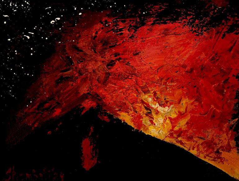 The eruption of the Stromboli volcano. Sicily in Italy The picture was painted in one breath. After the full-scale russian invasion of Ukraine, I had to leave my country. I was reached by a kind Sicilian family, I was safe and even had the opportunity to see an incredible miracle: the eruption of a ...