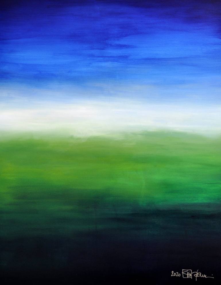 WHEN THE NIGHT FALLS ON SACRED LAND V 2020 100 (h) x 80 (w) x 2 cm 39,4 (h) x 31,5 (w) x 0,79 inches acrylic and oil on canvas "Your heart is sacred land. Don't let just anything enter it. Guard it with your life." - Yasmin Mogahed (ex: Reclaim Your Heart) "This mountain has my heart. This land i...
