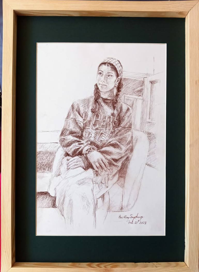 This color painting of that time can be described as one of the most beautiful female portraits that the designer has created with a pencil. The beauty of a woman's face, bringing out the sensuality of the emotions is great done with just a pencil pattern in a single color. There is a kind of waitin...