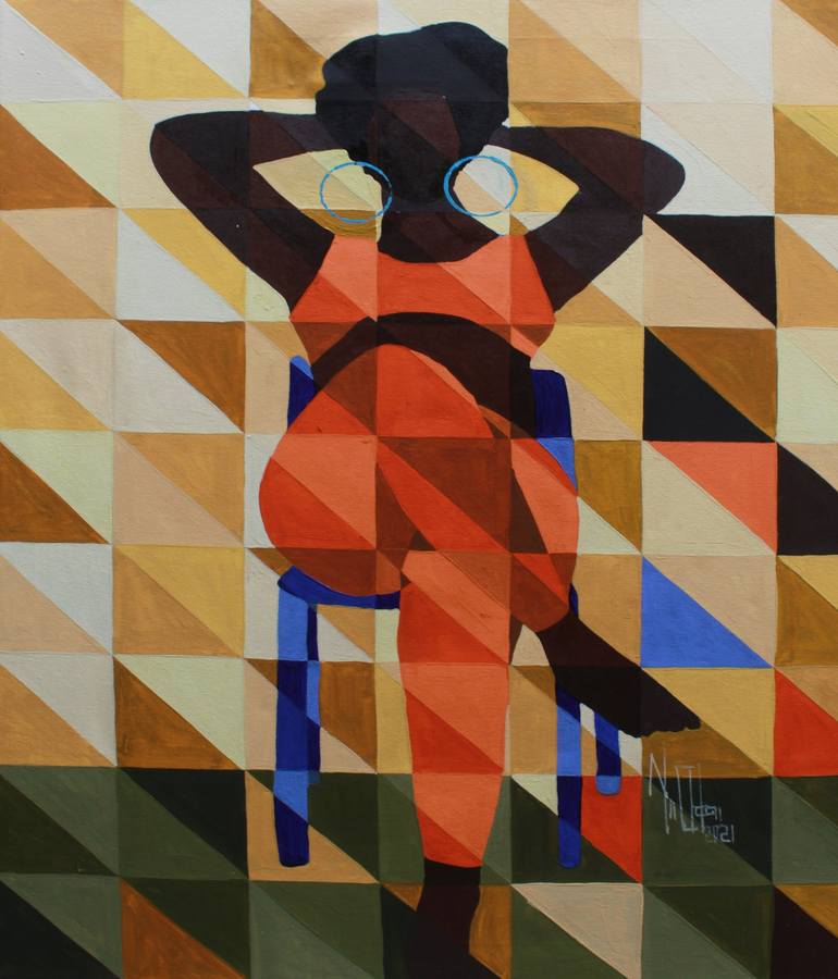 In his work, Tetteh condenses the internal sentiments and tensions of his characters and focuses them, using the eyes as the outlet for expression. In this way his subjects become independent bodies, bold and daring. By examining the psychological conditions we as humans are prone to experience, and then exhibiting them through physiological manifestations of that experience, Tetteh’s work is processual in nature, approaching each personality with care and consideration. His experiments are not only in content but in form, colour, and texture, manipulating paint through swift brush strokes and thick impasto. Theophilus Tetteh (b.1991) lives and works in Accra, Ghana. He studied Graphic Design and Painting at Marimus Art School, whilst continuing to experiment with different media. After finding solace in the pictorial possibilities that Expressionism offered, he found figurative paintings most effective in exploring emotive qualities. His figures which often appear static and singular, are in fact dynamic entities of the local culture. Tetteh has participated in solo shows and group projects across Ghana, notably the Kente Design Project for Kejetia Market (Kumasi, 2017) and National Theatre of Ghana (Accra, 2018). He was recently awarded Artist of the Year (2021) by the BE OPEN Foundation and is also a member of the Ghana Association of Visual Artists (GAVA).
