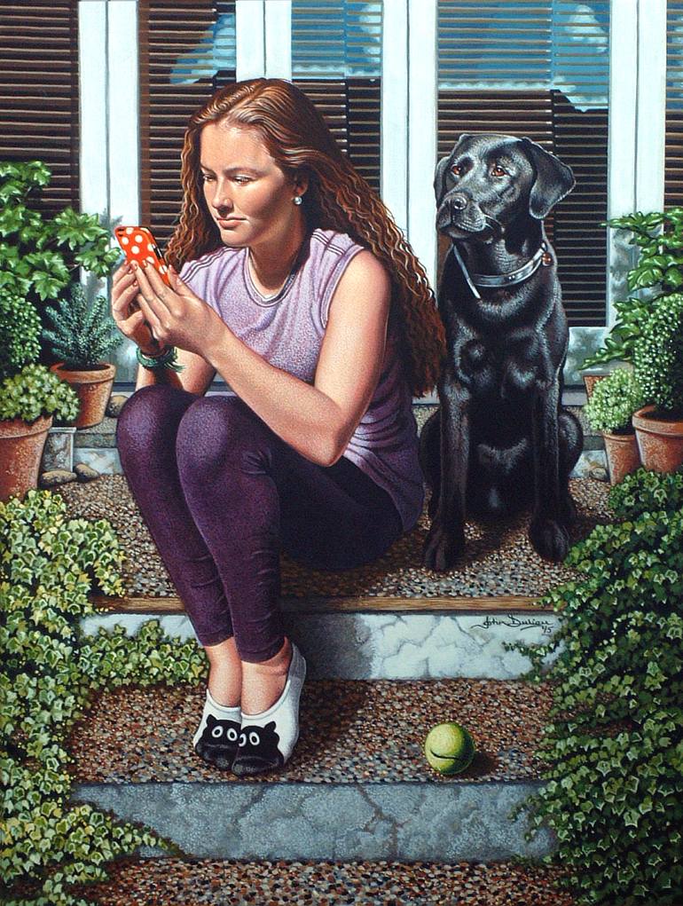 John is an Actor turned Artist. The shift in commitment from one discipline to the other has turned his passion back onto painting, so more like Actor returned to Artist. Born and bred in London he works primarily in Acrylic and favours wood panels to canvas. He works to commissions and personally motivated themes, and has for the past six years been compiling a body of work with the intention of mounting his next solo exhibition . A lifetime of fascination with humanity and the facial landscape has taken him from portraiture, to the intensity of figurative work, with occasional vacations in Sky and Seascapes, an antidote to inhabited paintings. In his late teens John abandoned the restrictive formal art training he was being offered and relegated his development in art to a second string position, then embarked on a working life as a jobbing actor. Twenty-five years later he came full circle - in part satisfied by his achievements and disillusioned with acting's random auditioning process, he re-ignited his artists passion. "As an actor I was, like so many of my contemporaries, subject to the lottery that is the audition process and despite years of satisfying performing work I wasn't fulfilling my creative potential." - "As an Artist the creative process and the completing of work is so much more rewarding although finding an audience this way round has proved the greatest challenge to date." In response to the absence of a lengthy description accompanying his work, John politely states, "I have a belief that great art, especially figurative, and realism does not require a statement, description or essay to accompany it, for me the art IS the statement. These unnecessarily in-depth narrations explaining what the artist intended or what stimulated the painter to produce what we see are redundant to my way of thinking. Save for the title, date and medium used, its the viewers unique interpretation that makes the art so expansive and ultimately enduring". With regard to his 'process' - "I like to work in isolation and at my own pace, not to a rhythm dictated by the subject/sitters availability or mood. Personally, I am somewhat inhibited by the continuous presence of the subject, in part because I want the piece to be stimulated by memory and impressions prompted only by the sketches and photographic material I have made from my initial inspiration, that way my imagination gets a say in the process".