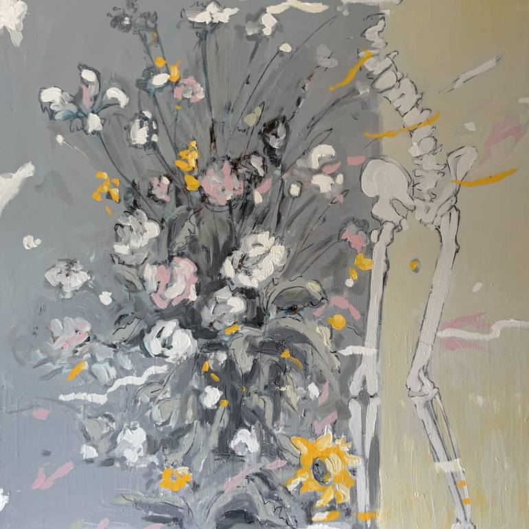 This work was inspired by the still life paintings of the Dutch Golden Age and the genre of Vanitas. The casual pose of the hips and spine suggest life, like the flowers, but both are stages of the death cycle. I hope the viewer recognises the tension between life and death in the work, or the cheer...