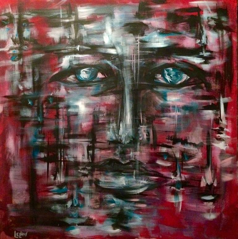 Face abstract acrylic on repurposed canvas. Created during a period of internal turmoil and pain