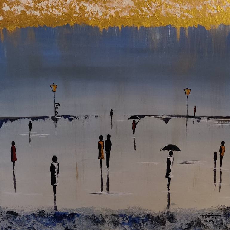 I have lovingly created this piece with textures, colours, light and shadows, using my brushes and palette knife. The sound of the raindrops is one of the most relaxing sounds of nature. Walking in the rain can be most meditative and therapeutic. With the cool water washing away the deep inner sadne...