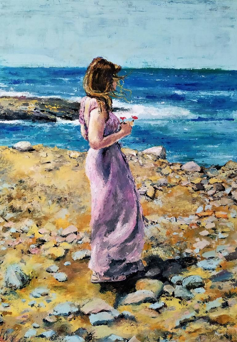 Being on the beach beautiful light and colors of the sea inspired me to paint a picture. A strange, unusual color of stones, it was a beautiful spring day with a breeze