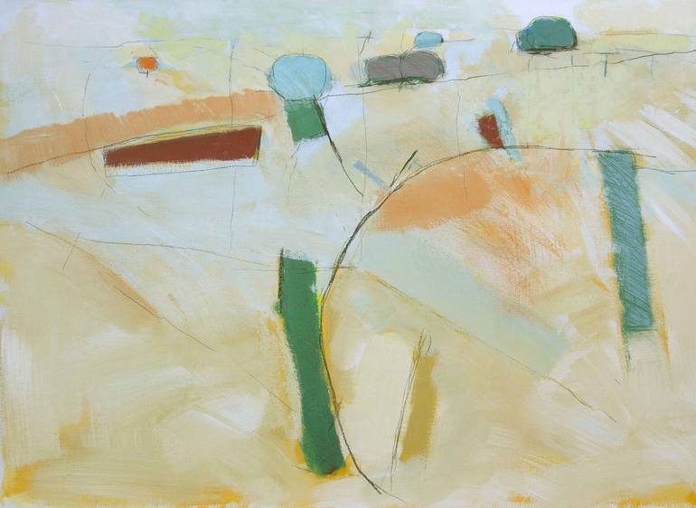An Acrylic painting on Canvas Board. A walk across the Marlborough Downs to Avebury in 1984 remembered 30 years later in 2014: The field patterns, broken geometry, the trees, the ancient field markings and the archaeology.