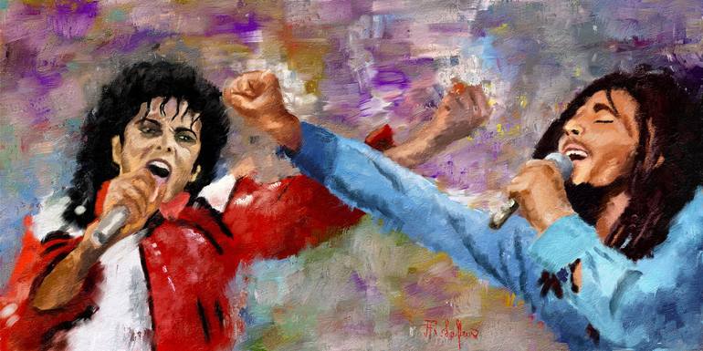 Step into a world of musical greatness as Michael Jackson and Bob Marley harmonize in a captivating painting. These legendary icons unite, their voices intertwined in a soulful melody that transcends time and genres. Feel the rhythm of their music as it resonates through the canvas,Wood, Aluminum or...