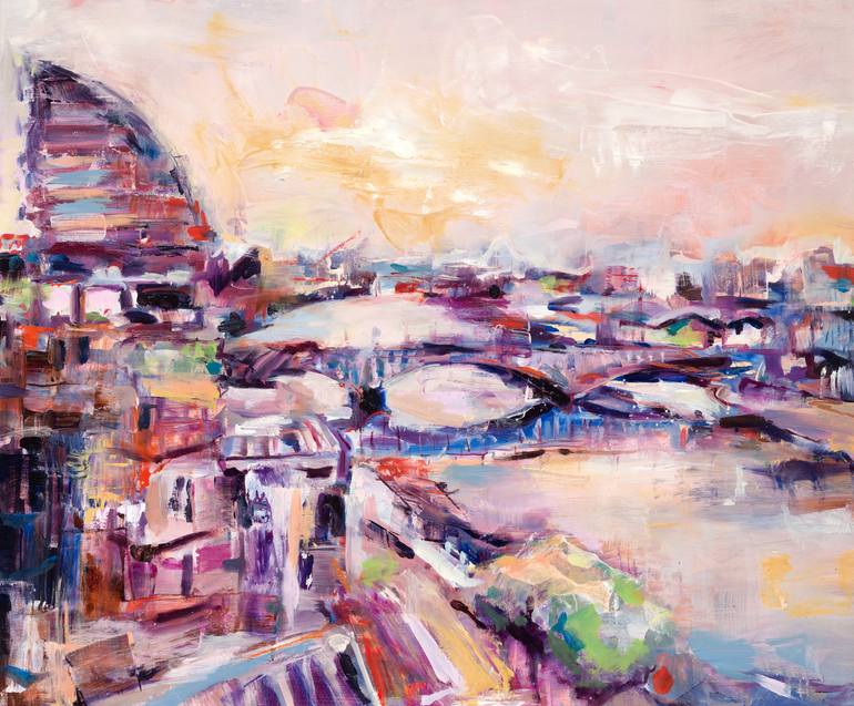 This painting was a study for a larger abstract piece that sold to a client based in Fulham, London. I stayed in the Battersea Reach apartment for a few months in 2015 and took photos from the balcony with a view to create a series of paintings of The Thames River and ended up painting this piece i...