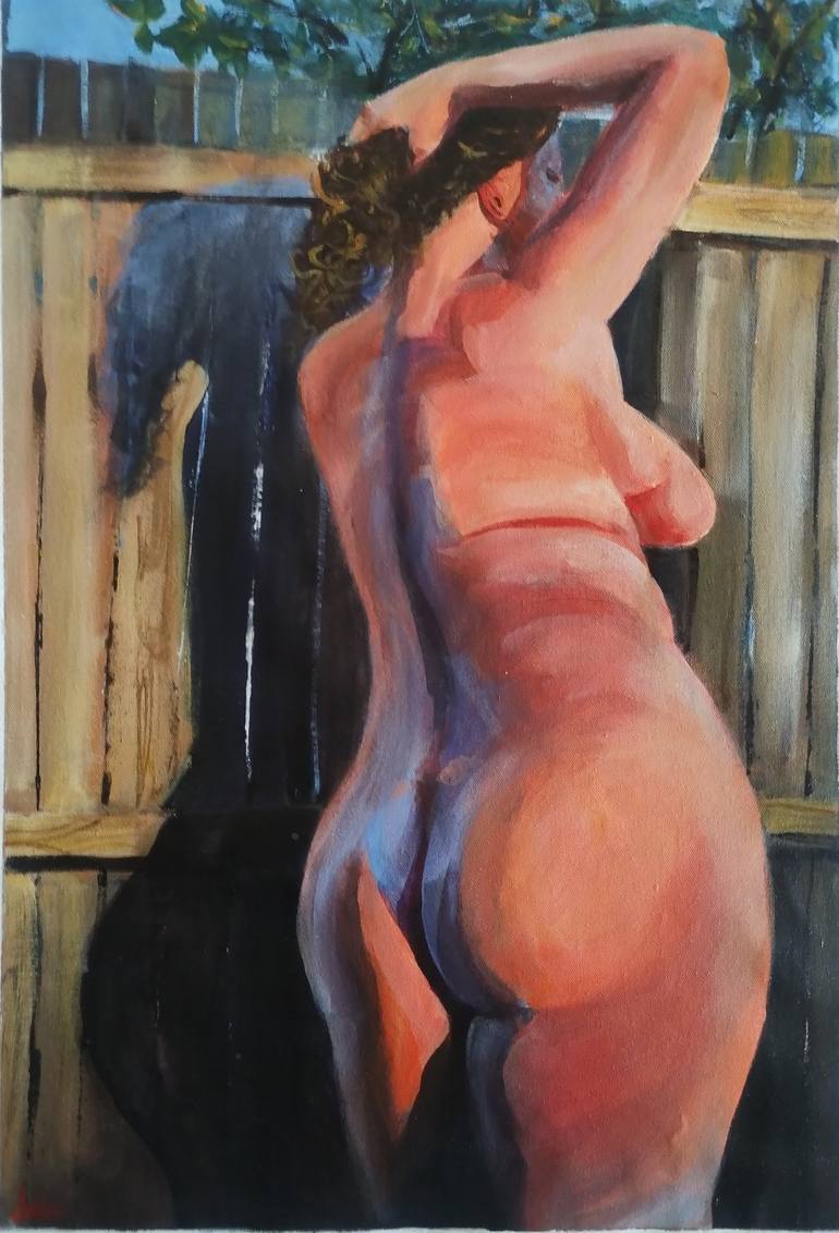 Based on a gorgeous self-portrait by IG artmodelandrea3.0 this figurative painting is all about the grace of the human form cloaked by the auratic glow of warm evening sunlight. A bold and simple composition arrests the viewer's gaze on the central subject. Attention is coaxed along the ebb and f...
