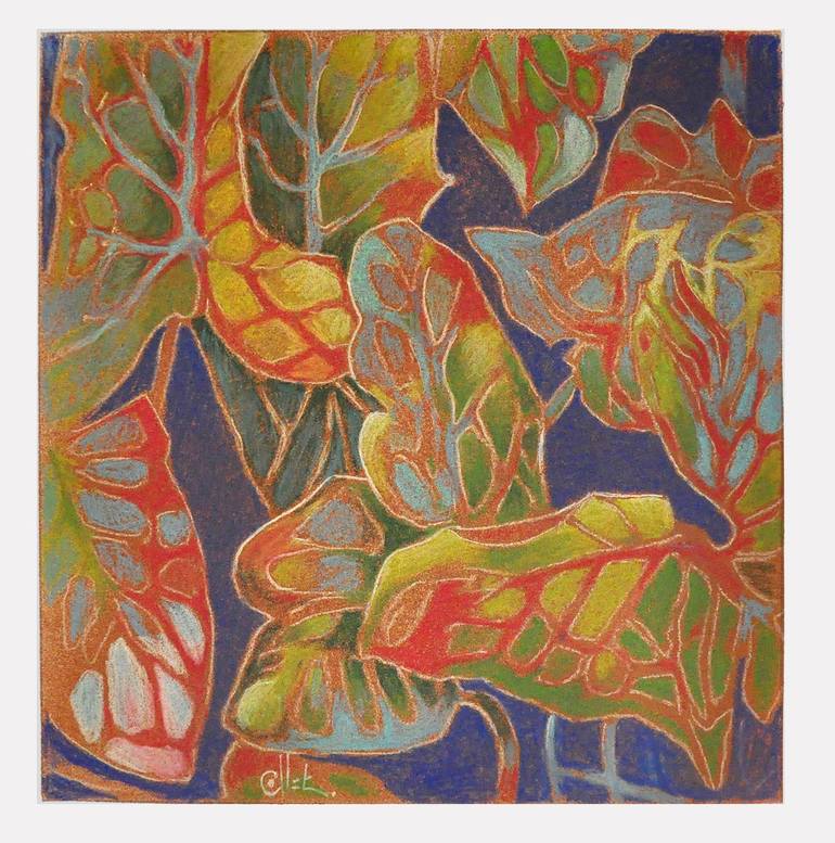 35 x 35 cm pastel n a50 x 50 cm paper. Leaning towards each other, these leaves with their swollen veins compare their shimmering colors.