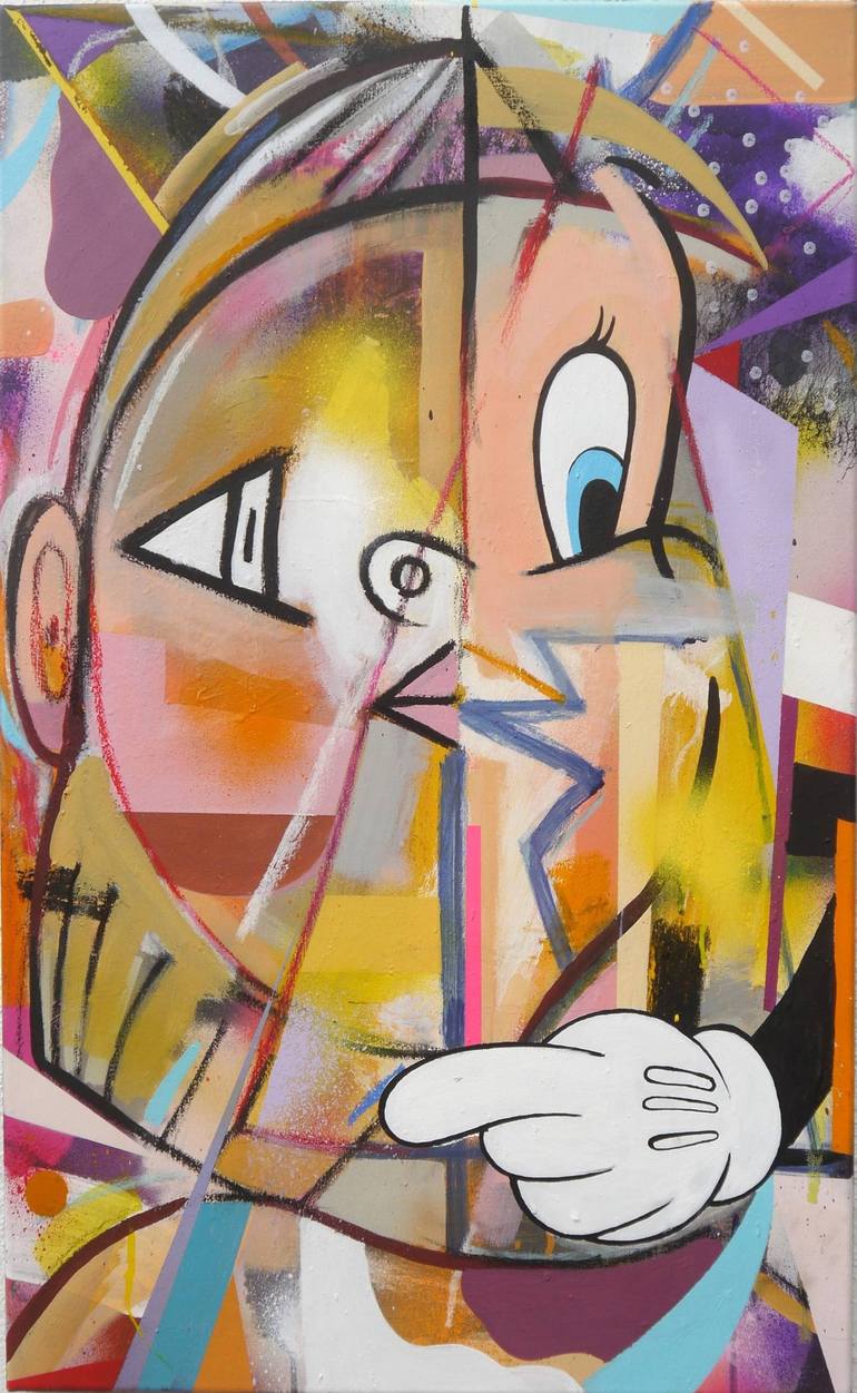 Born 1981 in Landshut Germany I started my way into art as a teenager who fell in love with street art and soon was able to do big murals with well known people like os gemeos and flying fortress. In my recent work I try to combine elements of Street Art and Naive Art/ Outsider Art with traditional ways of painting or sculpturing as well as using its subjects or copied elements.This way I am experimenting with the different energy and history of the individual art forms and the possibility to combine it. Like the modern way of living and especially the capitalistic way of life absorbs all rude and natural forms of living, my work shall reflect this in an ironic way. My pictorial narrative technique is that of the stream of consciousness - protagonists, landscapes and motifs arisen from the stream of consciousness, are cut out of their larger context and intertwined in free association with new content and figures. And yet, follow the pictures a clear intention and statement: they offer the viewer familiar shreds of collective memory and embed it in a carefully staged design from the strangest landscapes, situations and constellations. The viewer opens up a wondrous universe of styles, time frames, social developments: often seemingly naive, sometimes expressive, sometimes wild - as fantastic as castles in the air in the forest of thoughts, and yet extremely precise in the architecture. In its wild mix of levels of meaning, details and contexts it includes the riddle and its solution at the same time. Behind often humorous, ironic titles hides such as behind the image plane itself a reflexive attitude towards the old questions of mankind or social constructs.