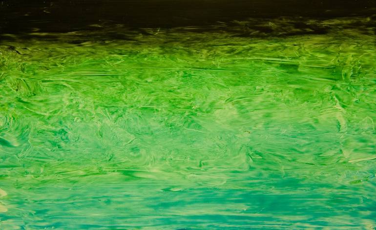 This painting was inspired by the reflection of light on water. I find that getting the results I want works best when I use my hand to move the paint. The image was done quickly and captures the changing quality of light and color on water. Painted on a heavy, smooth particle board with white edge...