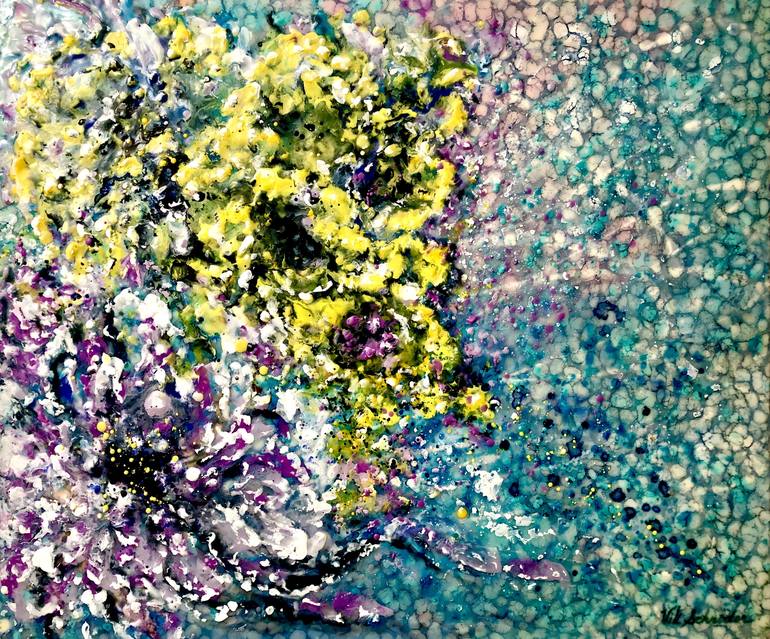 Most people are very fond of flowers and looking at the water. And what could be better than looking at flowers that grow in water ...?)) Water Flowers - Original painting. Encaustic. Wax on canvas 50-60 см Canvas is painted on the sides too, It was created in 2018 Signed. Ready to hang. One-of...