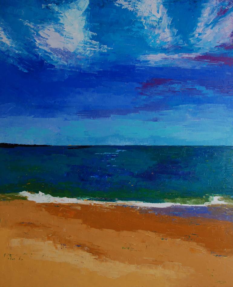 As long as I remember I have been interested in art, in drawing and colouring. After a lot of travelling and life experiences I started full time painting in India in 1988 with oil paint and the pallet-knife experimenting with colours in abstract mostly canvas paintings who often turn out as landscapes, seascapes, clouds or cosmic vibrations. Some are very vibrant, emotional, with strong colours, others are just very quiet monochromes with shades of one tone, all creating a certain feeling or atmosphere. Being as well a musician it is in my art like in music expressing inner emotion without representing the real world. Many of my paintings are a dream world, the world I would love to live in. A memory of ancient prehistoric times, I have had exhibitions in many different countries like India, France, Holland, Germany, USA, Australia, Spain and Portugal. My paintings are with collectors in India, France, Holland, North Korea, Switzerland, Germany, Belgium, Australia, USA, UK, Norway, Spain and Portugal. Saroja's paintings are represented in different private collections of art in India, France, Holland, South Korea, Switzerland, Germany, Belgium, Australia, USA, UK, Norway, Spain and Portugal. And her work is represented in the Museum of Contemporary Art of Sa Pobla, Majorca, Spain.