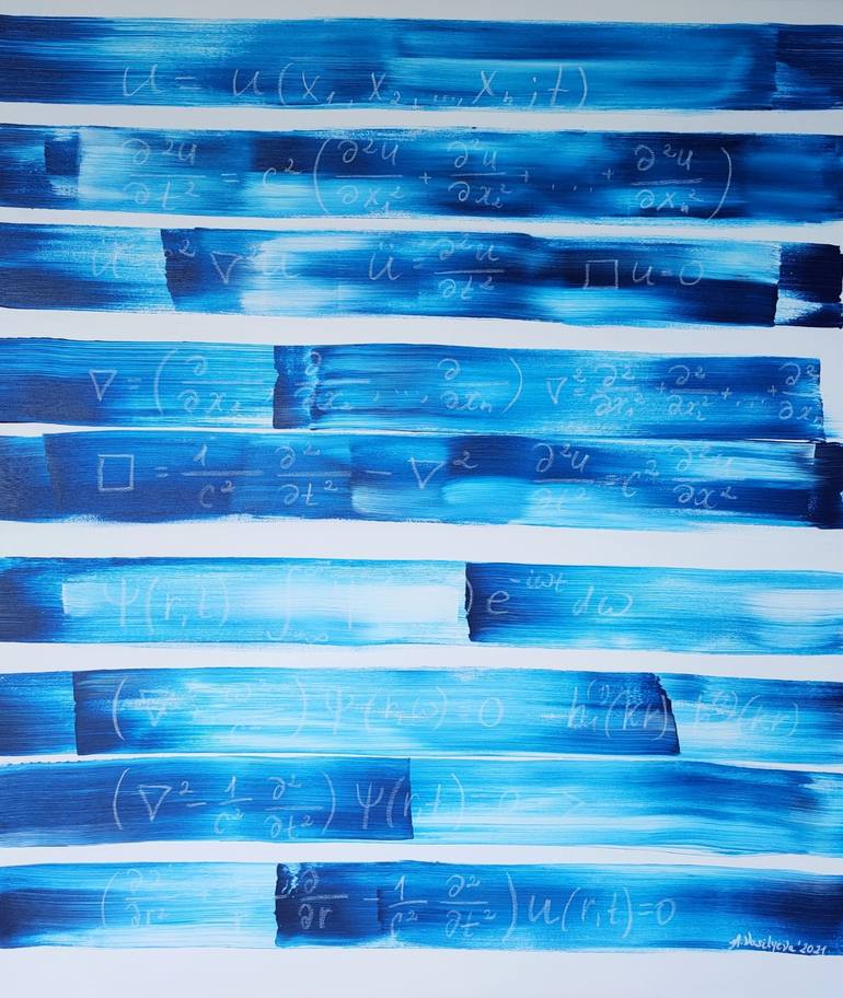 This painting was inspired by the sea coast in California. I use mathematical formulas from Wave theory to combine science and art together. The painting will be shipped rolled in a tube. The painting is a part of the Science Art Collection, painted 2021.