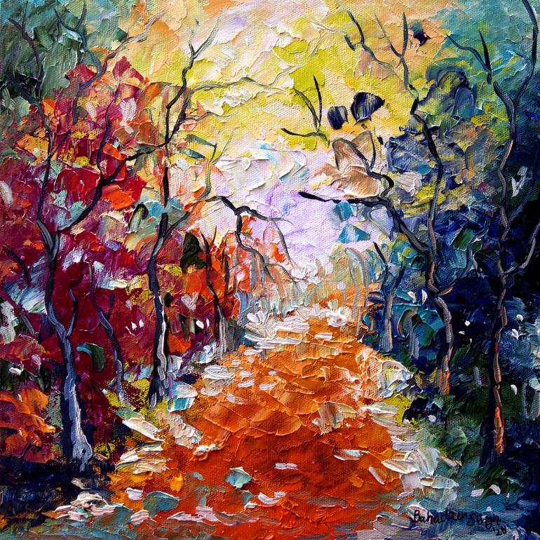 Bahadur Singh My paintings and my art is made of my internal emotion, my view as an artist I can express my feeling through the colors. It is the best way to express my feeling and expression on canvas with the help of endless colors. I am very much fond of nature so I always try to make my paintings alive as nature. Personal and collective catastrophes and individual questioning. My work lives on this quest until it becomes a rite of realizations, a struggle for the possibility to order the sensation of consciousness. My subject is nature based on Trees, I usually do two types of works one is Nature and second is Seasons, In my nature works there is Green colour primary as we all think nature is green and we can imagine trees can be green only, and the second side in Seasons there is lots of colours as normally we can’t see the beauty of nature, this is just a way to make aware others how beautiful it is. website:
