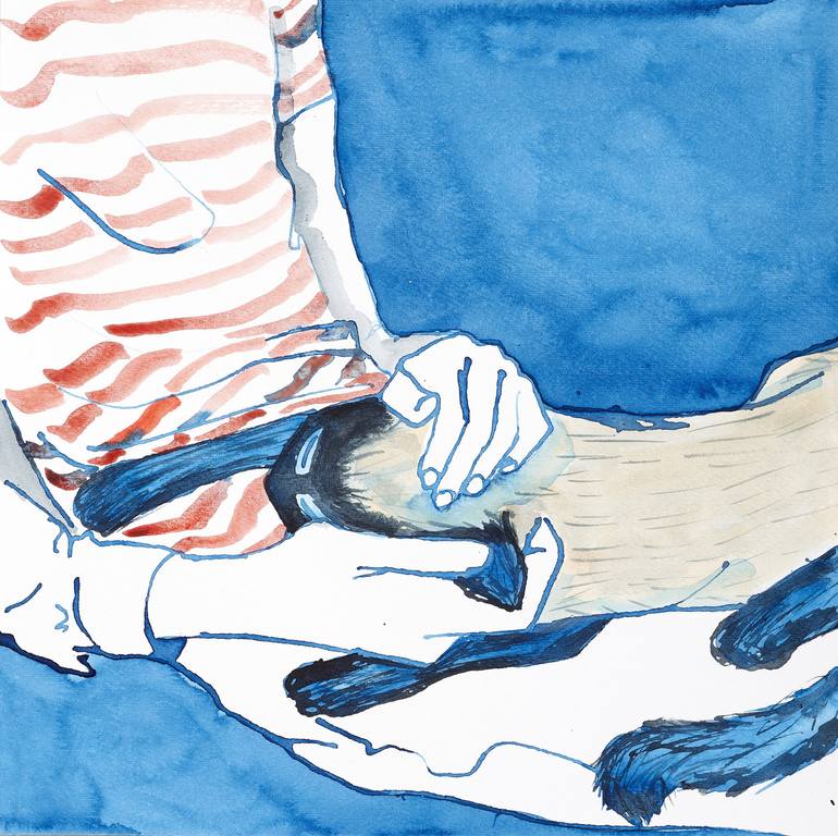 This painting is one of a series "We All Need A Hug" that came about during the lockdowns that affected millions world-wide. This time highlighted the human need to connect with each other, we are social beings. For many that were alone, pets were a vital source of love, affection and touch. These a...
