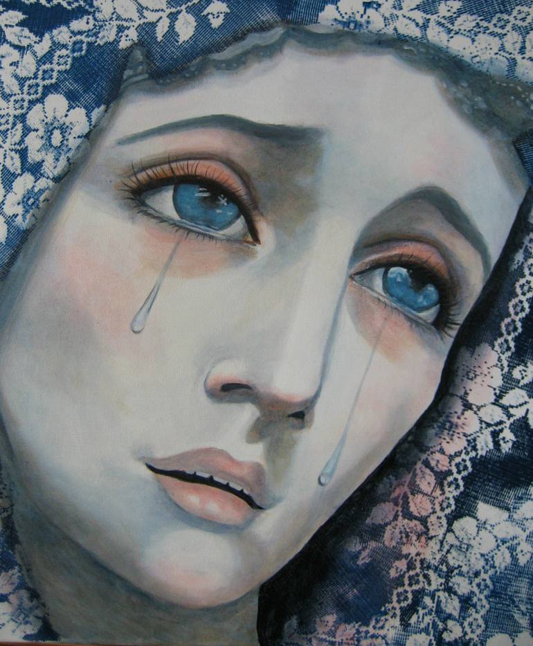 Weeping Mary is inspired from the many beautiful statues of our 'lady of sorrows'. I created this image while experiencing a state of devastation, and this painting helped to regain my footing. Stunning beauty thrives through our collective humanity, and it is this beauty and heart that I hope to sh...