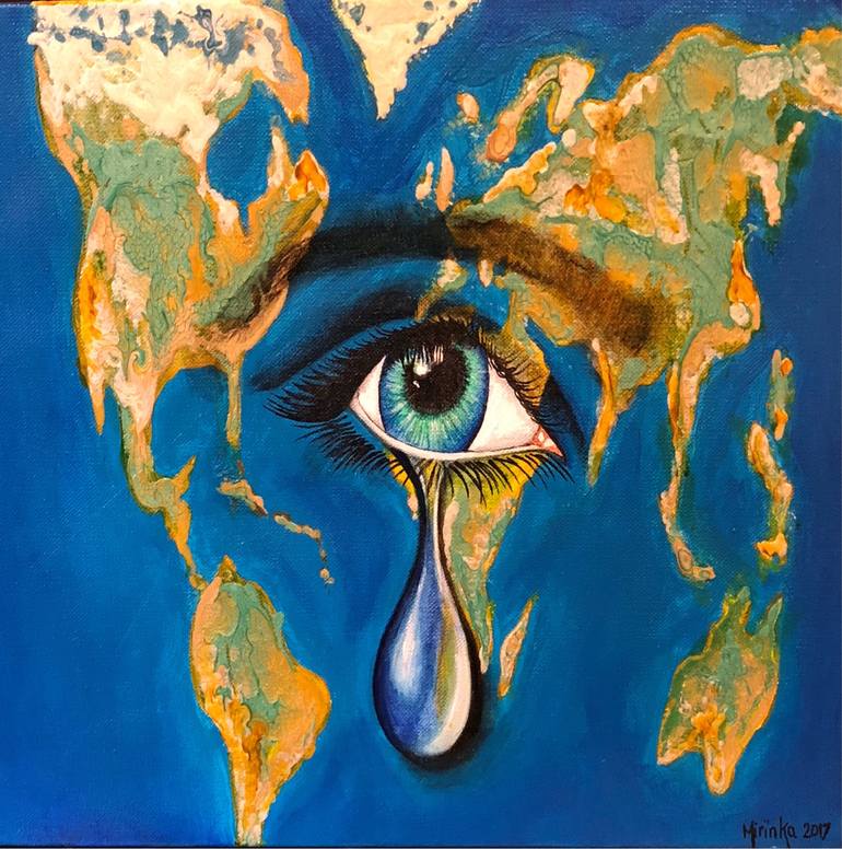 Our planet is hurting and my heart was hurting . This painting represents how the whole world was feeling in 2017 as it was a devastating year , with Hurricane Maria in the Dominican republic , 2 Earthquake in Mexico, Monsoon flooding in Bangladesh, Mudslides in Columbia, Hurricane Irma in the US a...