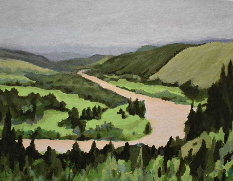 View of the Whanganui River and adjacent hills after it had been raining for several days. The sky is just beginning to clear. Please contact the artist if you are interested in having the picture sent framed. The painting can be shipped with or without a frame.