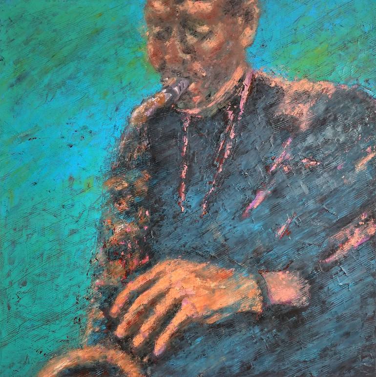 This sax player gets a little lost in the haze of club smoke. Is it John Coltrane? Sidney Bechet? Charlie "Bird" Parker? we’ll never know. he’s lost in his music, to our delight. What counts is the music that makes us dream as we dream this painting of Albina. In this work, I captured t...