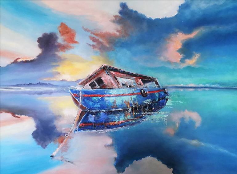 In this moment, the water becomes a quiet listener. Like a gentle presence, it holds the old boat and listens to its stories — of time, journeys, and pauses in between. The boat does not move. It remembers. And the water, calm and attentive, allows those memories to exist without urgency. This paint...