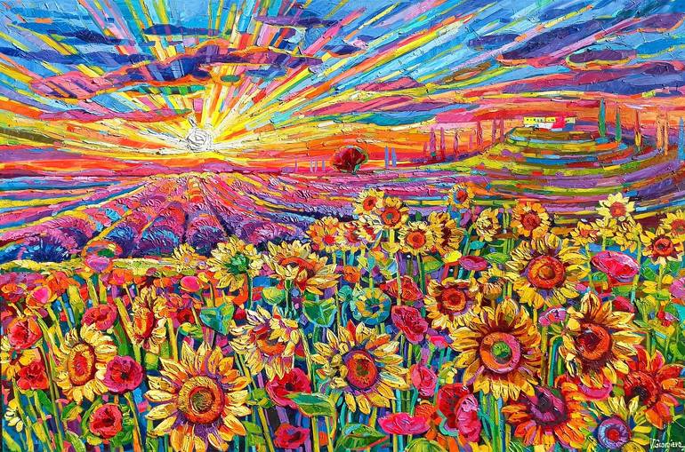 Vanya Georgieva creates scenic landscape oil paintings in bright colors. Enthusiastic about the ability of art to convey beauty and feelings, her artwork can help you create a sensational and energizing atmosphere. Founder of the artistic movement "RA" (Rainbow Art) which is based on a technique called by Vanya "the touch of the butterfly" with clean or almost clean colors that mix lightly with each other only on the canvas, creating a powerful network of ghostly energy , which has also been used in chromotherapy for years. The technique that Vanya uses is the result of years of practice, drive and experimentation! Oil on canvas on a dark acrylic background with a base, so you can bring out the colors even more ... They often think that Vanya uses special almost phosphorescent colors, because the effect is amazing. But the truth is that it is the use of color itself, the lightness of the brush strokes, the way of putting the color on the canvas that is almost a caress ... dexterity and procedure acquired by Vanya after 15 years in the studio. Her style Is Unique with exact step by step . The passion for art is gratified with great success by critics and the public in her solo and group exhibitions to convey to visitors and especially to her children , the enthusiasm and love for ART as a transmission of beauty and universal feelings!