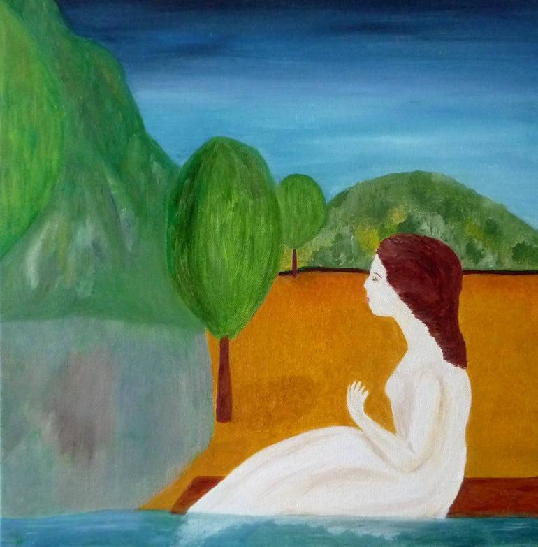 Where ignorance is bliss, 'tis folly to be wise. You'd think blissed-out, pictured, would learn how to swim rather than dipping her feet into water, (symbolic language for a symbolic painting). Composition deliberately uses lines, vertical, horizontal and diagonal.