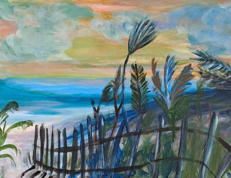 In this striking acrylic on hardboard, Laura Bernardeschi Nelson captures a fleeting, windswept moment along a coastal stretch—likely inspired by the raw beauty of Northumberland’s shores. With deft, expressive brushwork and a keen eye for the mood of a place, she offers more than a landscape; she o...