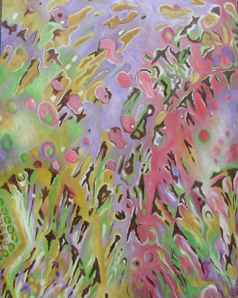 This colourful painting is one of new works inspired by some of the modernist painters from the 1960's & '70's such as Wilem De Kooning and Joan Mitchell. This approach to painting involves work that comes into being through unanticipated responses to what is taking place on the canvas. Whatever has...