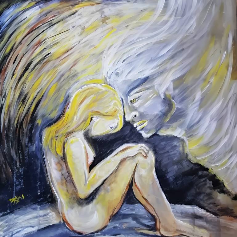 "Whispers of the Wind" depicts a poignant scene of a woman embracing a moment of introspection. The artist beautifully captures the essence of a conversation with the wind, symbolizing the loss of self, resilience, and rebirth. The swirling brushstrokes of the wind and the flowing golden hair create...